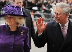 Britain's Prince Charles and Camilla, the Duchess of Cornwall, arrive at Westminster Abbey on Monday. Prince Charles is to visit a rare herd of European bison in Poland's primeval Bialowieza forest next week, local authorities said Monday.