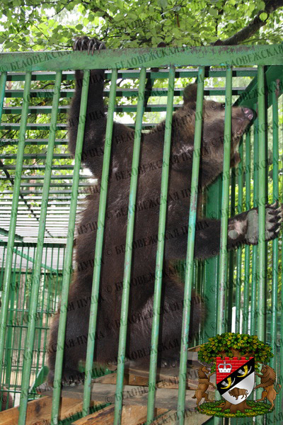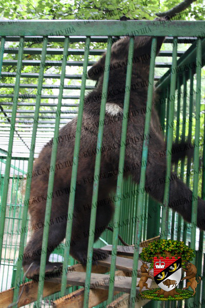 An old female bear was passed in Minsk Zoo to implement the plan for renovation. A young bear from the farm "Saveliev SC" was brought in its place. The attention of tourists is attracted by two white spots on the neck which is a rarity for the brown bear. "Mary" is gradually adapting to the new place of residence and increased attention from tourists.