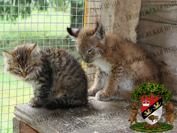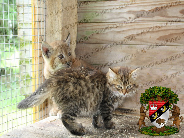 A small lynx and kitten to become friends in Belovezhskaya Pushcha