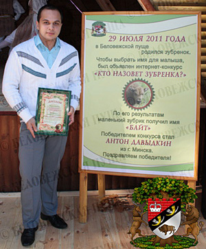A Diploma of the National Park and a facsimile edition of the G. Kartsov's book "Bialowieza Forest" were presented to Anton Davydkin from Minsk, the winner of the contest "Who will call a small bison?" who proposed the name "Byte" for the small bison.