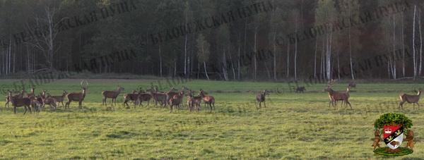 In early autumn, especially in the morning or sunset, a long and loud roar similar to a growl can be heard in Belovezhskaya Pushcha. These terrible unusual sounds are uttered by European red deer during their wedding season. Females are gathering with roaring males and "harems" are formed. The larger becomes the "harem", the less is heard the males' roar.