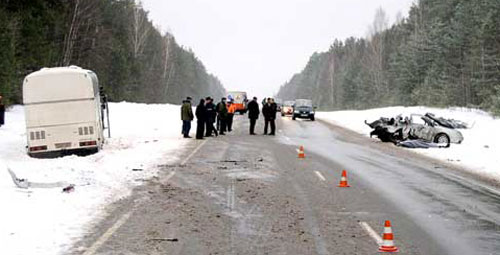 A bus with Minsk school students riding to Belarusian Santa Claus in Belovezhskaya Pushcha crushed a Volkswagen Golf