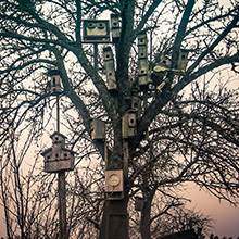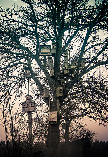 К незнакомым людям, притормаживающим у их дома и азартно щелкающим фотоаппаратами, супруги Щурко из деревни Попелево Пружанского района давно привыкли. «Сашка! К тебе приехали! - зовет хозяйка дома Людмила Васильевна, выйдя к калитке на звонкий лай дружелюбной дворняги. – Иди про свои птичьи апартаменты расскажи!» Именно эти «апартаменты» и заставили меня сбросить газ. В жизни не видела столько скворечников на одном дереве. Да еще и каждый на соседа не похож: цилиндрические, квадратные, в три этажа, с мансардой…