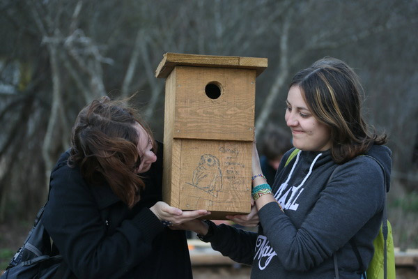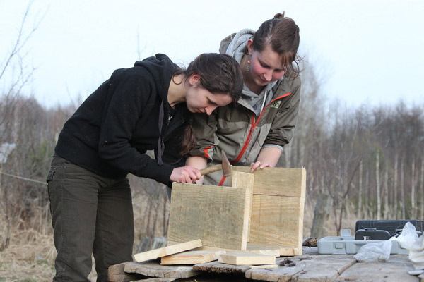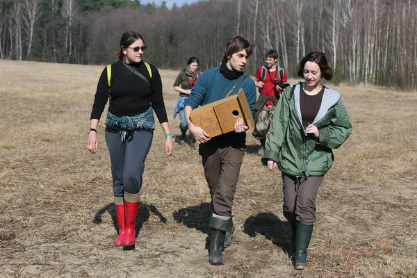 Гэты імклівы надыход вясны заспеў удзельнікаў лагера не з пустымі рукамі: птушак ужо чакалі некалькі гатовых хатак, падобных на шпакоўні, ішла бойкая работа над новымі драўлянымі канструкцыямі. Гаспадарамі незвычайных новабудоўляў павінны стаць совы і сычыкі. Стварэнне новых домікаў і пляцовак для гнездавання савіных відаў якраз і з’яўлялася адным з праграмных мерапрыемстваў лагера «Начныя жыхары ляСоў». Не давялося сумаваць маладому арнітолагу Дзянісу Кіцелю (на фотаздымку), для якога вывучэнне соў з’яўляецца ці не асноўным заняткам жыцця. Ён ладзіў майстар-класы па развешванні домікаў, праводзіў лекторыі і вадзіў групы па балотных дарогах.