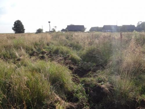 Через деревню Шишово выезжаем к хутору Ляховичи. Пяток безлюдных хат. Люди здесь "вахтовые" – видны следы их работы во время редких, судя по траве, приездов. Луг на подступах разрыт дикими свиньями. По звериной тропе около километра шуршим и топаем к реке. А вот и лежбище зверя в грязи на берегу! Но воды пусты, если не считать одного-единственного жука-плавунца на сотни метров. На камыше возле сухого дерева над щучьей ямой вода оставила черную метку. Плюс метр над уровнем. Впереди недалеко слияние Левой и Правой Лесной, но оно в топком месте. Выходим к автомобилю.