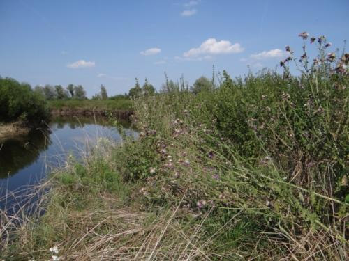 Попутно сфотографировал заросшее крапивой левобережье мелиоративной системы в пойме Лесной, тянущейся от трассы М1 до шоссе Вистычи – Чернавчицы, и распаханный до уреза воды правый берег. Кукурузы в этом году здесь не было, только что сжали пшеницу.