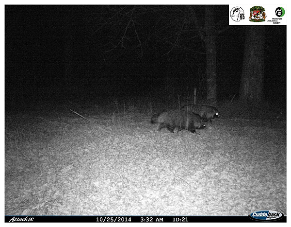 І свежы здымак фотапастак — пара сабак ноччу.