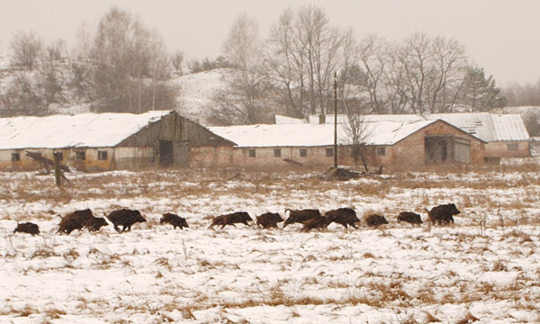 Популяции дикого кабана в Чернобыльской зоне резко сократились в 1993-1994 гг., в связи с увеличением количества волков, а также вспышкой африканской свинной чумы.