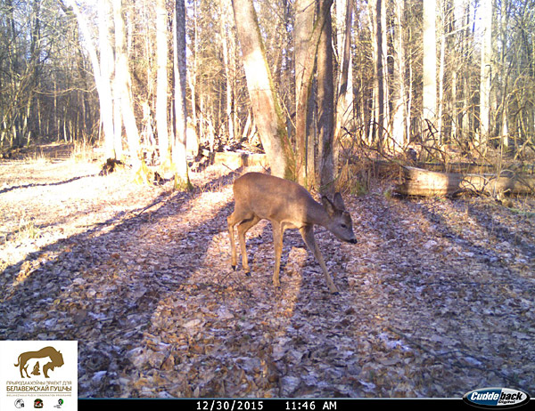 Вам падалося, што гэта дзіця высокароднага аленя? А вось і не: на «Канале дзікай прыроды з Белавежскай пушчы» – прыгожая сталая казуля, якая выйшла пагрэцца на рэдкім зімовым сонцы. Няма снегу, але для казуль гэта плюс. З-за свайго невялікага памеру жывёлам нязручна хадзіць па высокім снежным покрыве (40-50 см і больш). Таму зімой казулі імкнуцца хадзіць па звярыных сцежак або дарогах. Пры глыбокім снезе сутачны кармавы шлях казуль скарачаецца з 1,5-2 да 0,5-1 км. Асабліва небяспечная для казуль ледзяная корка на паверхні снегу, на якой можна паслізнуцца. Будзьце асцярожнымі, казулі!