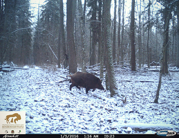 На «Канал дзікай прыроды з Белавежскай пушчы» прыбег кабанчык! Паглядзіце, які вялікі: так ён выглядае з-за таго, што ўзімку пад пругкай, рэдкай шчэццю жывёлы ёсць густы мяккі пушок. А яшчэ гэты здымак паведамляе, што нарэшце 5 студзеня ў запаведным лесе пайшоў снег!