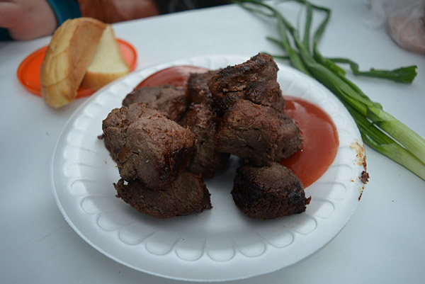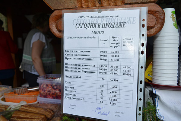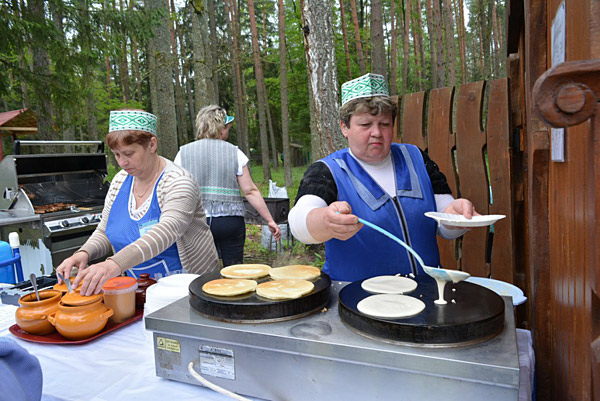 Не менее увлекательным оказался и конкурс охотничьей кухни, участники которого радовали эксклюзивными блюдами. К примеру, в одном из котелков на костре готовился бограч – венгерское блюдо из четырех видов мяса, добытого на охоте. В свою очередь повара ресторана «Беловежская пуща» позаботились, чтобы в меню праздника присутствовала и дичь, и суп-гуляш из оленины, и фаршированный судак с прочими явствами. Ну, а из всего многообразия шашлыков наибольшим спросом у гостей пользовалось мясо оленя: для многих это была первая в жизни возможность распробовать сей деликатес.