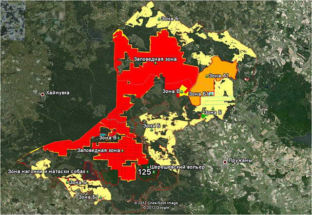 Поэтому в 2012 году в связи с увеличением заповедной зоны Национального парка, потребовалось внести изменения и в проект ведения охотничьего хозяйства. Так появилась в Беловежской пуще еще одна весьма парадоксальная зона. Если быть точнее, то в северо-восточной части Национального парка, выделили зону А1- преимущественного ведения охоты на лося (площадь около 12,3 тыс.га).