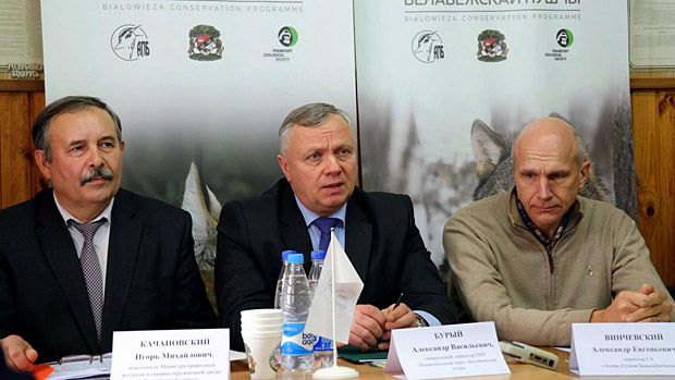 Игорь Качановский — заместитель министра Минприроды, Александр Бурый — директор нацпарка «Беловежская пуща», Александ Винчевский — директор Общественного объединения «Ахова птуша Бацькаўшчыны»