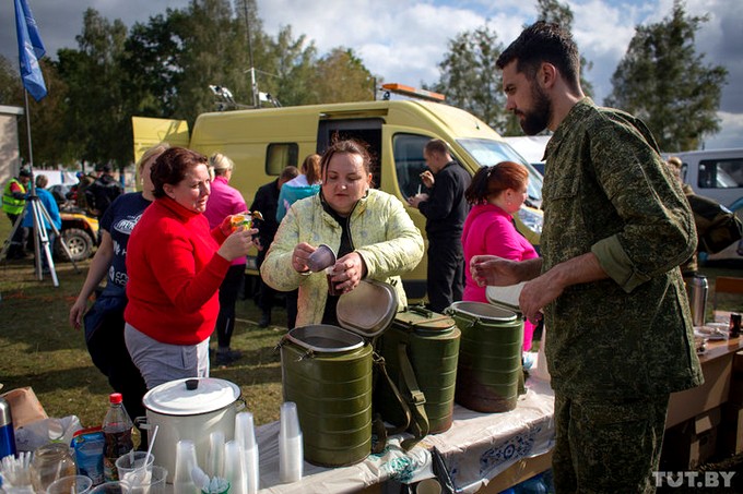 Волонтеры «Красного креста» разбили свой лагерь около здания сельсовета. Здесь тоже накормят горячей едой, если надо, окажут первую медицинскую помощь и предложат чай или кофе. У спасателей — своя полевая кухня. Штаб представителей власти находится на окраине деревни. Здесь развернуты большие палатки, стоит специальная техника, вертолеты и беспилотники.