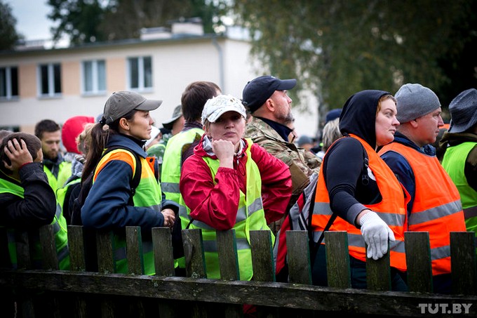 — Понимаете, очень сложно организовать такое количество людей. Никогда такой поисковой операции в Беларуси не проводили, — объясняет девушка, которая регистрирует волонтеров. По ее словам, на утро субботы в списках уже значилось более 600 человек. К обеду эта цифра выросла до тысячи.