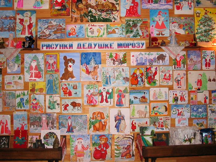 Поместье Деда Мороза пользуется большой популярностью у детей. Здесь же размещена выставка их рисунков. |