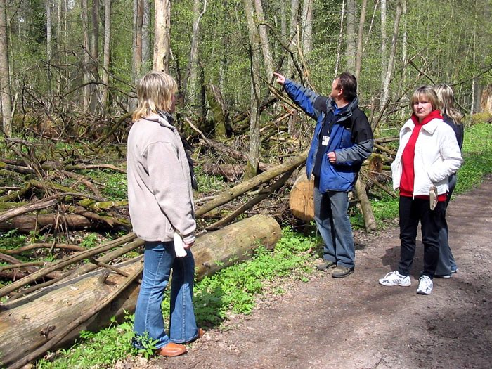 Польские натуралисты приехали посмотреть заповедную природу и охраняемую Беловежскую пущу. Но туристические маршруты проложены так, что по пути следования автобуса такой природы фактически нет. Повсюду вырубки, вырубки, пни, пни, пни… В Европе это называется – "бумажный" Национальный парк (т.е. Национальный парк на бумаге, не в натуре). |