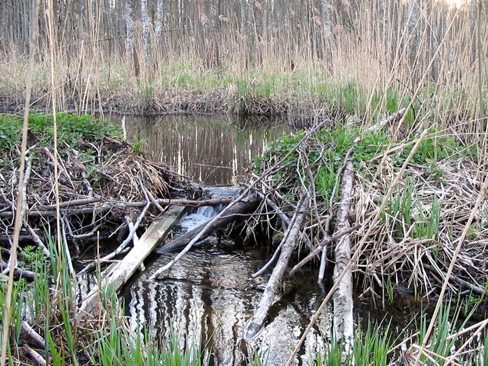 | Прямо за этой агро-усадьбой протекает лесной ручей, на котором бобры построили плотину. |