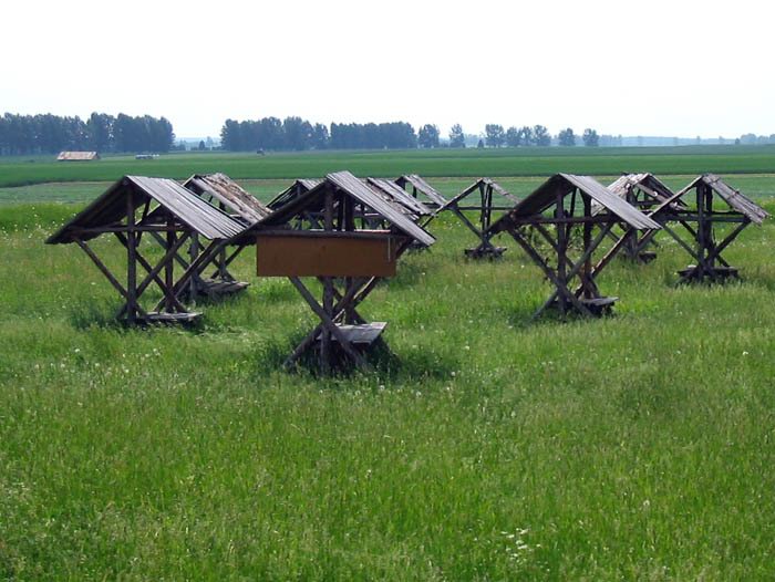 | Крест возле реки Нарев на перекрестке дорог. | Так традиционно выглядят домики сельских жителей в пущанских деревнях. |