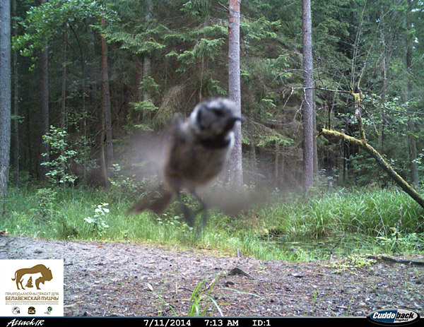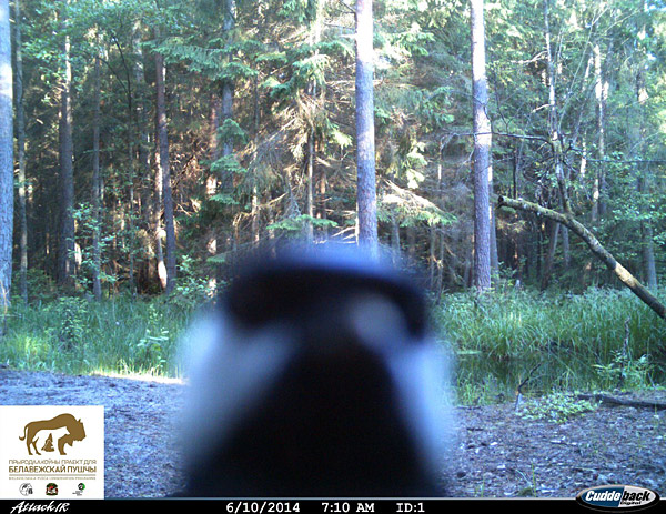 Што гэта за чорна-белая невыразная пляма? І чаму яна мае гонар удзельнічаць у МАРАФОНЕ цікавых ФОТАЗДЫМКАў З КАМЕР-ФОТАПАСТАК? Так як гэта, відаць, першае «сэлфі» птушкі на «Канале дзікай прыроды»! Таму ставім заслужанае «like»!