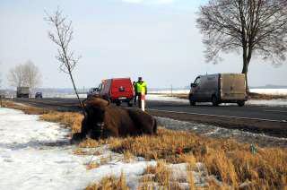 Grazyna Wolska, RDLP w Pile: „Spilcy” zubr wstrzymal ruch na szosie, 2010-03-05