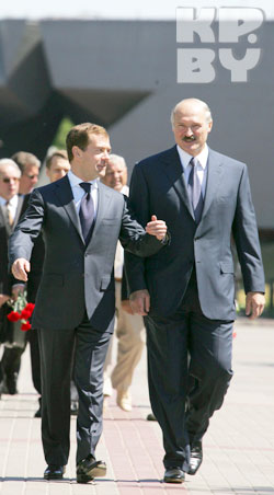 читайте материал о 22 июня 1941-го), Дмитрий Медведев отправился в Брест. Там, у легендарной Брестской крепости (именно она приняла на себя первый удар фашистов) его поджидал президент Белоруссии Александр Лукашенко. День лидерам выдался жаркий. Под палящим солнцем им предстояло возложить венки к Вечному огню, пообщаться с российскими и белорусскими ветеранами и провести переговоры о Союзном государстве.
