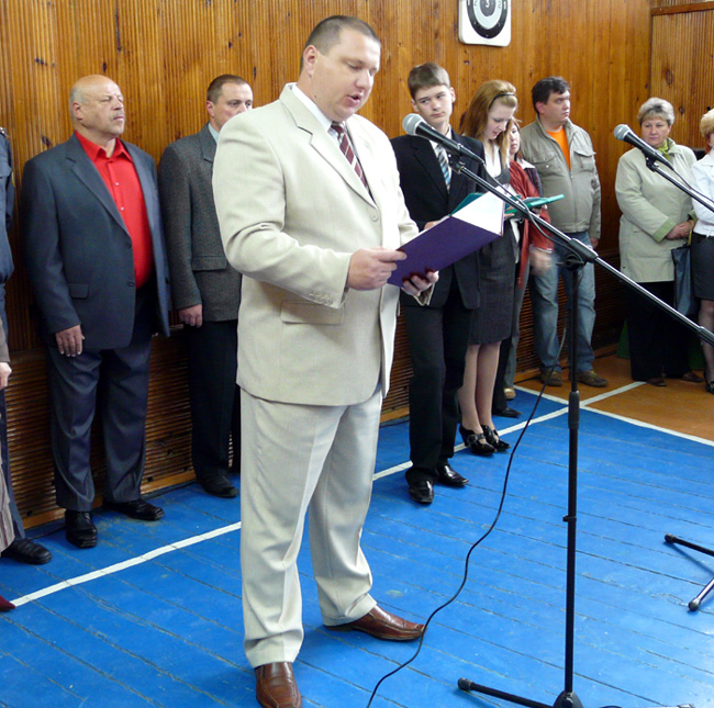 | Школьники и родители на выпускном вечере в Каменюкской средней школе, 6 июня 2008 г. |