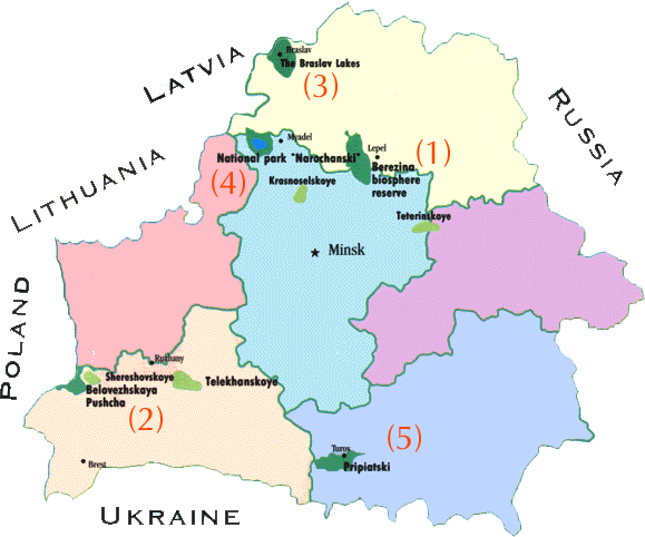 According to the national classification currently 4 National Parks and 1 Biosphere Reserve are recognized in Belarus. They cover a total area of over 400,000 hectares, which makes up about 2 % of the territory of the Republic. The Braslav Lakes National Park and the Narochanski National Park were created in recent years; in 1995 and 1999 respectively. In prior to that these areas served economic and agricultural goals. The other National Parks - Belovezhskaya Pushcha and Pripyatski - have a long history as protected areas and are covered by types of protection other than Specially Protected Natural Territory (SPNT), e.g. as State Reserve and State Protected Game Ground. However, more recently the territories under protection have been enlarged considerably and their functions have been extended.