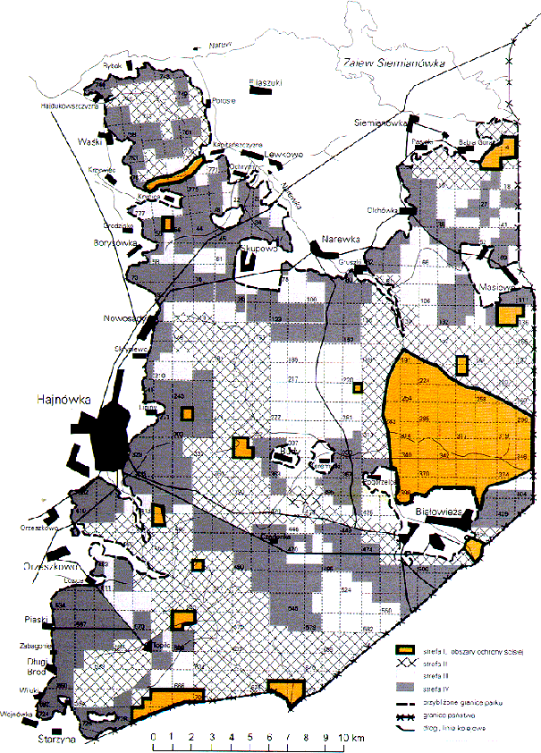 **The size and territorial distribution of separate zones of the Polish part of Bialowieza Forest is given according to data as of October 1, 2004.