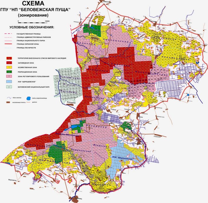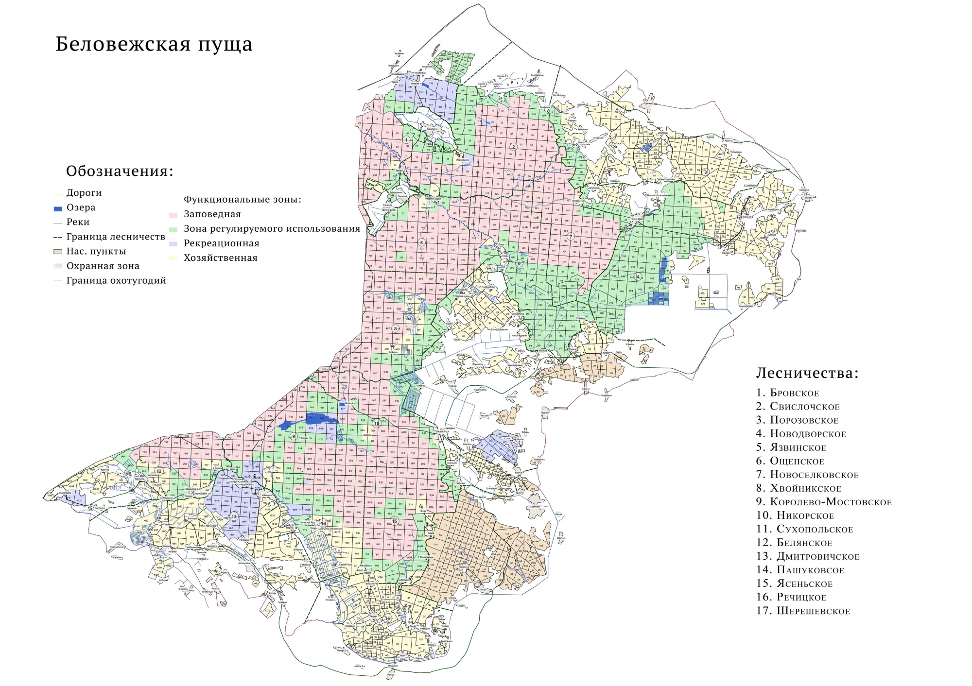 The territory of Belovezhskaya Pushcha has been divided into 4 functional zones in which the level of protection varies.
