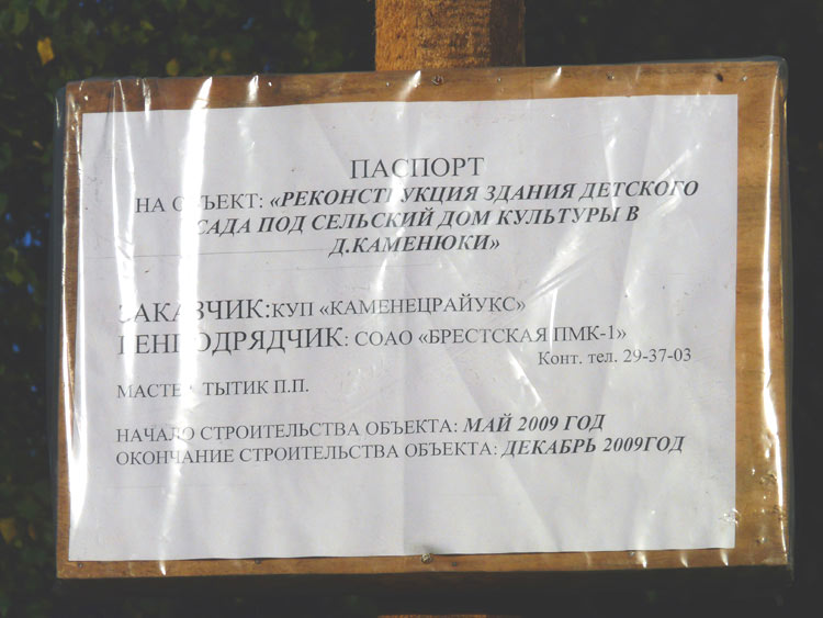 Events, fact, documents and evidence: A large culture venue was built in the village of Kamenyuki, the administrative center of the Belovezhskaya Pushcha National Park, in the late 1980’s. The venue accommodated a movie theater, a gym, a hobby room, a music school and the offices of the village government. The venue was under the jurisdiction of the National Park.
