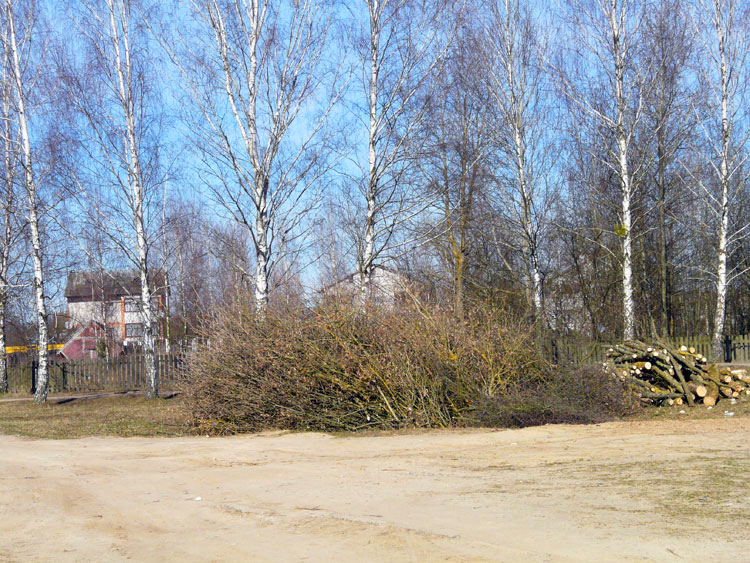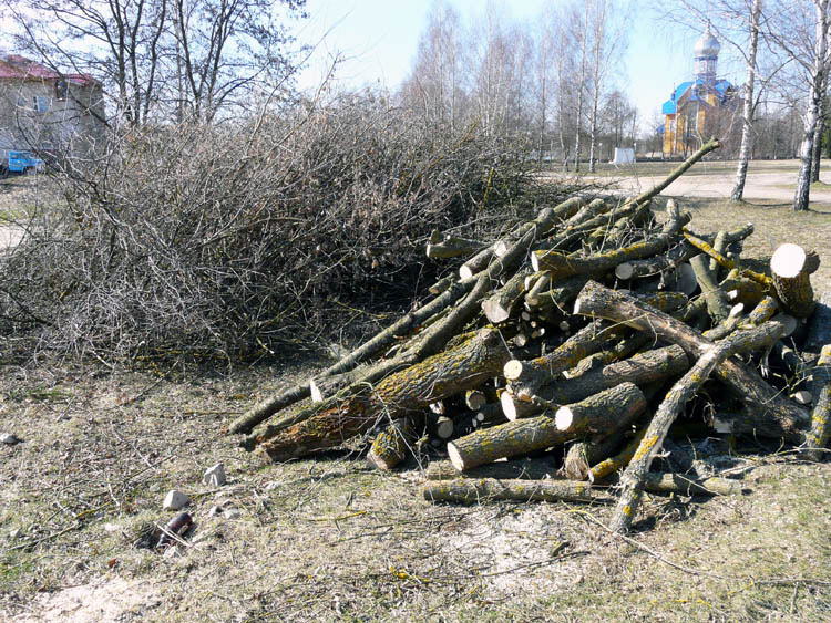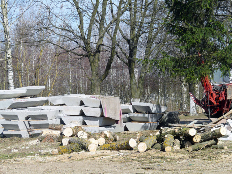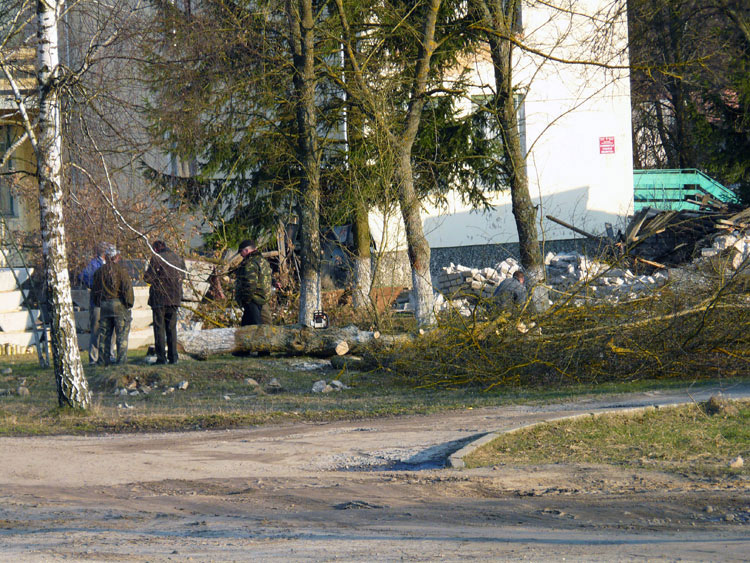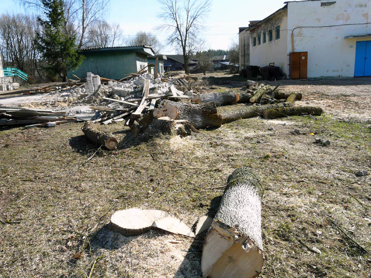 The project provided for a complete overhaul of the old building and some extensions to the west side. To do that, the builders had to cut down some of the trees that grew next to the building. The shots below show the felled maples.