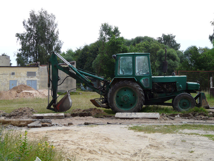 The shot below shows a tractor pulling old concrete curb blocks out the roadside in a backyard.