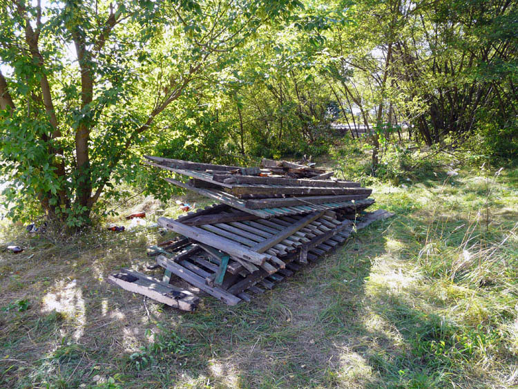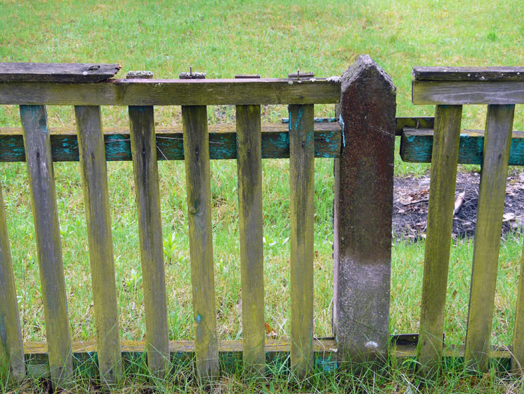 The photos below show surviving parts of the fence. The animal shapes and some of the diamond-shaped boards are missing.