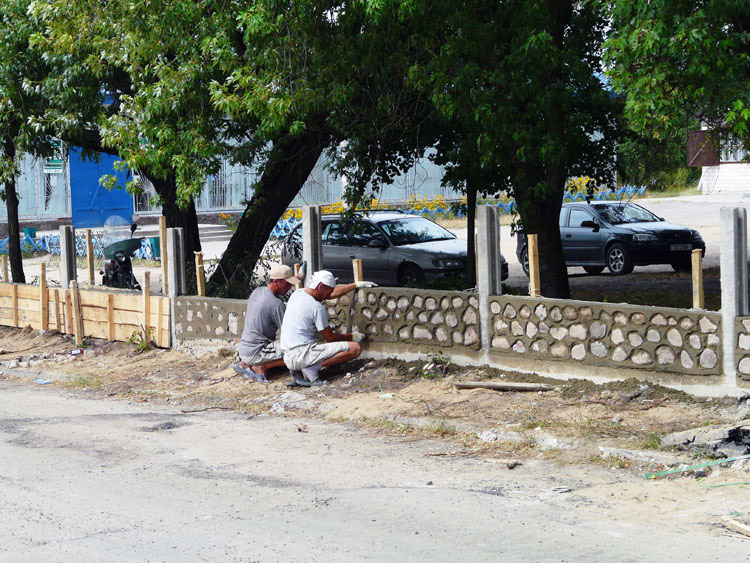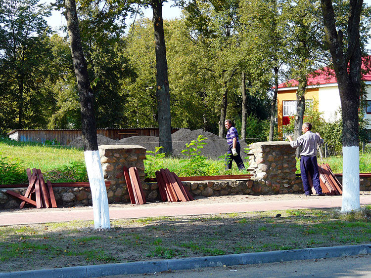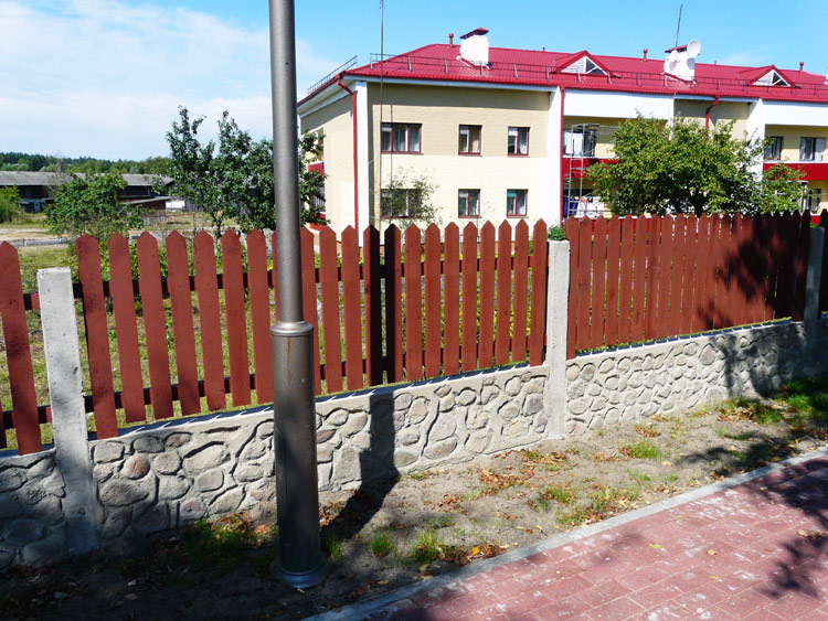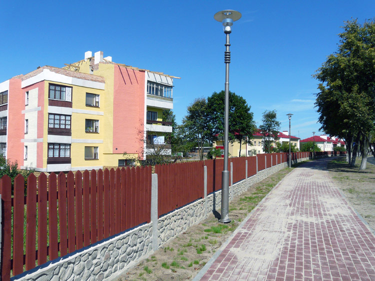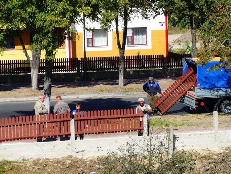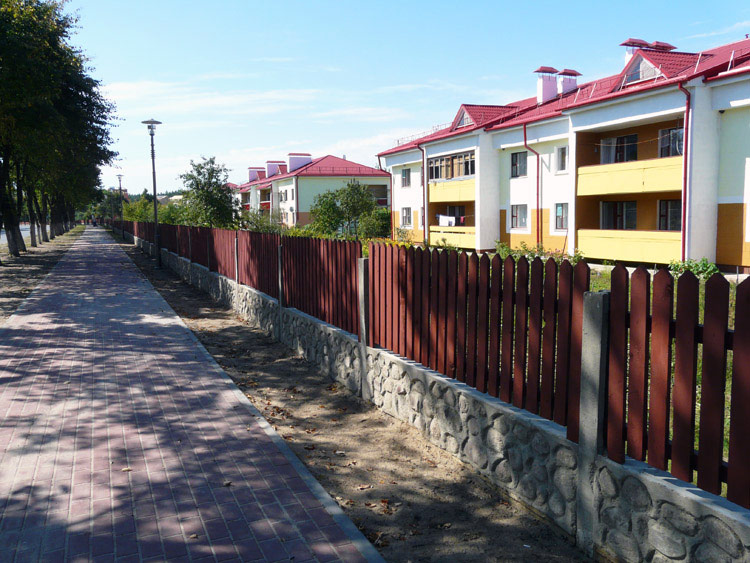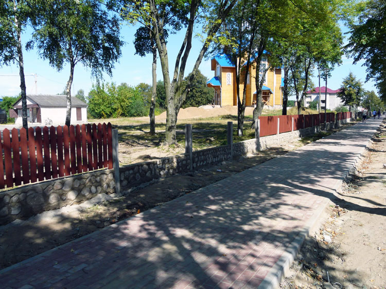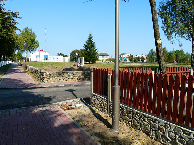 The photographs below show the new fence along the main street in Kamenyuki after the completion of the work. The fences along the side streets were not repaired.