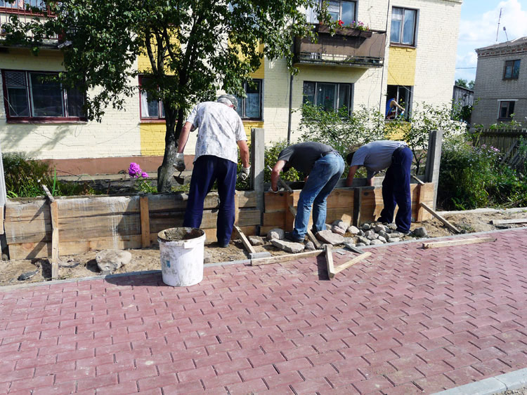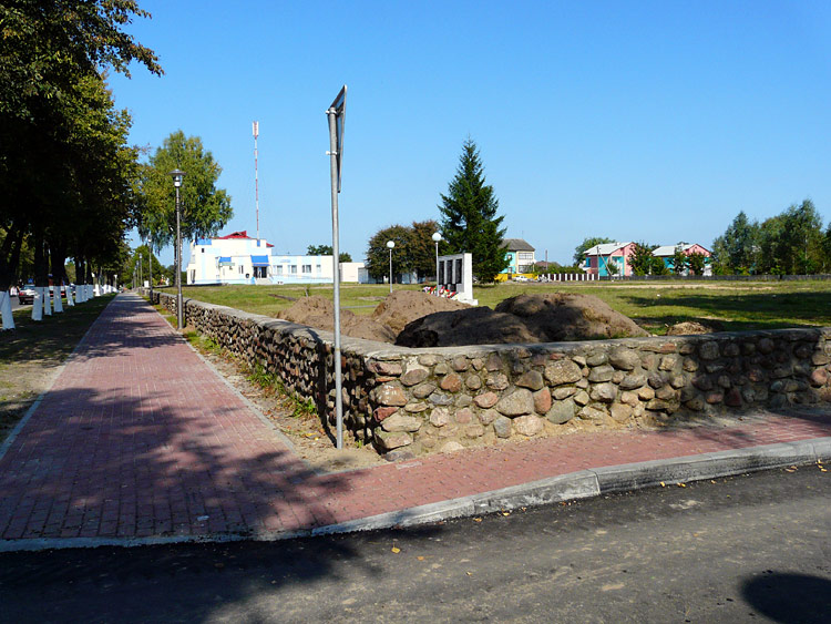 Construction of stone fences began in the village in 2001 after the appointment of the current Belovezhskaya Pushcha management, although the name of the village, derived from the Belarusian word for stone, has nothing to do with stone fences, and they have never been a feature of Kamenyuki's architecture. In addition, the stone "wall" looked rather simplistic and impersonal. Anyway, the purpose of building the stone fences, as well as the size and recipients of the funds spent on the project (especially in comparison to local wages), are well known to the national park accountants who were fired at that time.