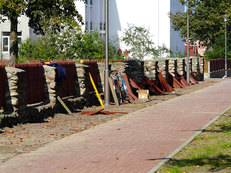 | (The stone "wall" against the background of the newly-built fence; September 9, 2009) | |||