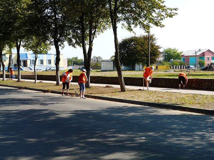 A student construction team from the oblast center of Brest came in to help.