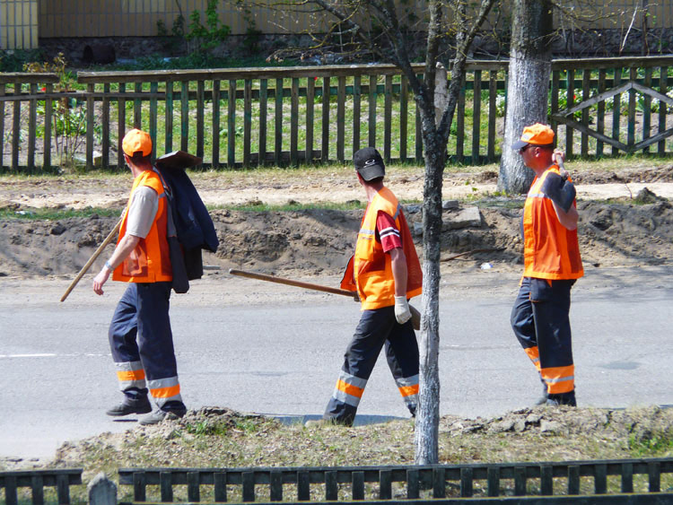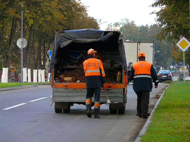 Workers are removing trash from the streets for the last time prior to the celebration of the Belovezhskaya Pushcha nature reserve statuss 600th anniversary.