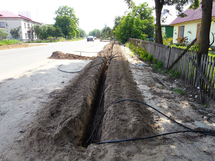 The shot below shows lighting cable being buried along the road.