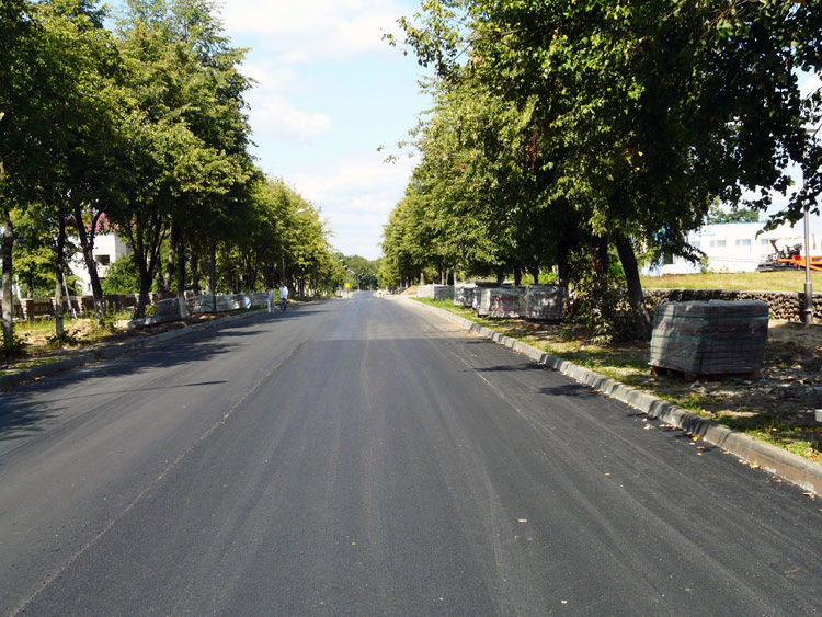 The shots below show the central road after it was asphalted in early August.