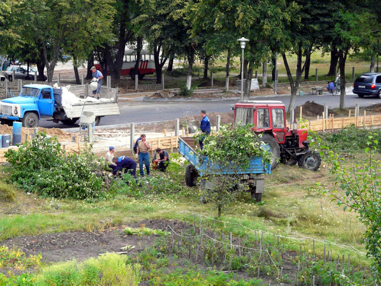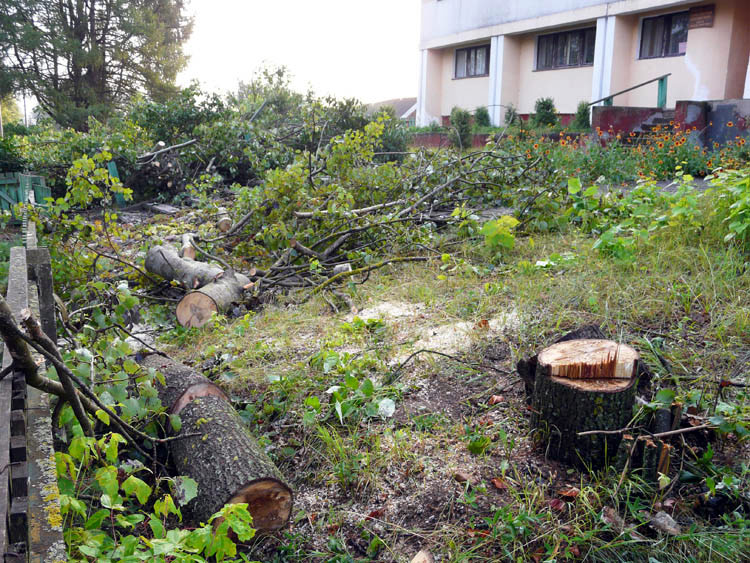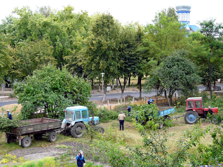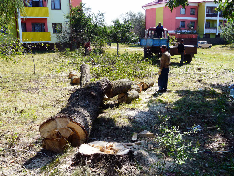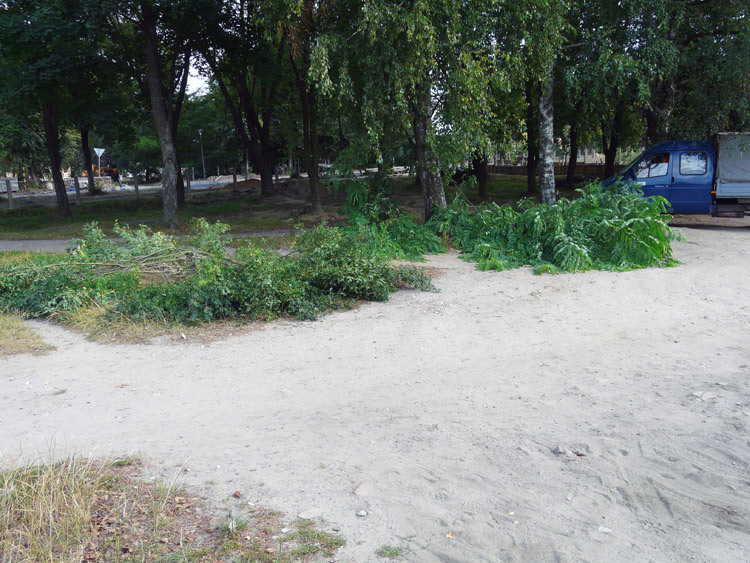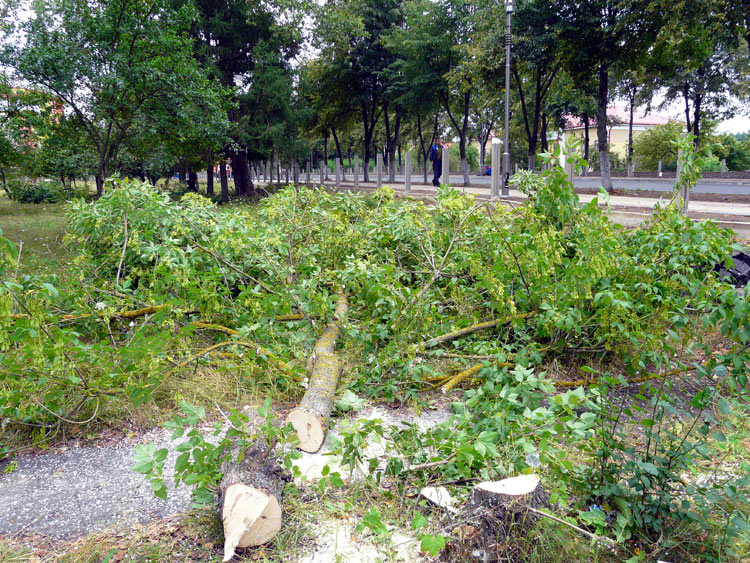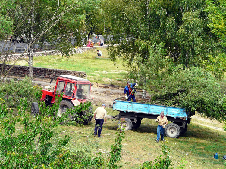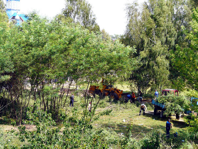 Full-blown landscaping, cleaning up and cutting operations began in early August. The criteria for selecting which trees would survive and which, would not, were quite harsh. Any asps, poplars and acacias, regardless of their condition or size were subject to felling. Other trees showing signs of disease or drying up were to be sawed down, too.