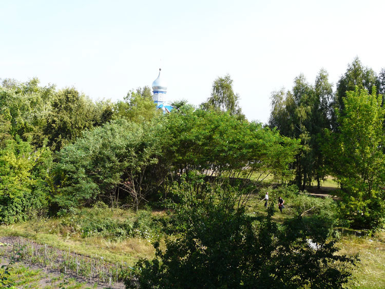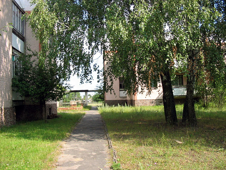 The village of Kamenyuki has a fairly large amount of greenery. Forty-year-old lindens grow along the main street. Gardens are many, and there are some small parks. Green plantations have hardly been cultivated, and tiny spots of wild-growing shrub are commonplace.