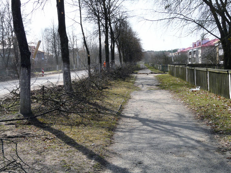 This spring trimming was apparently deemed insufficient and more linden branches along the road were cut off, which resulted in the crown of the trees being lifted.