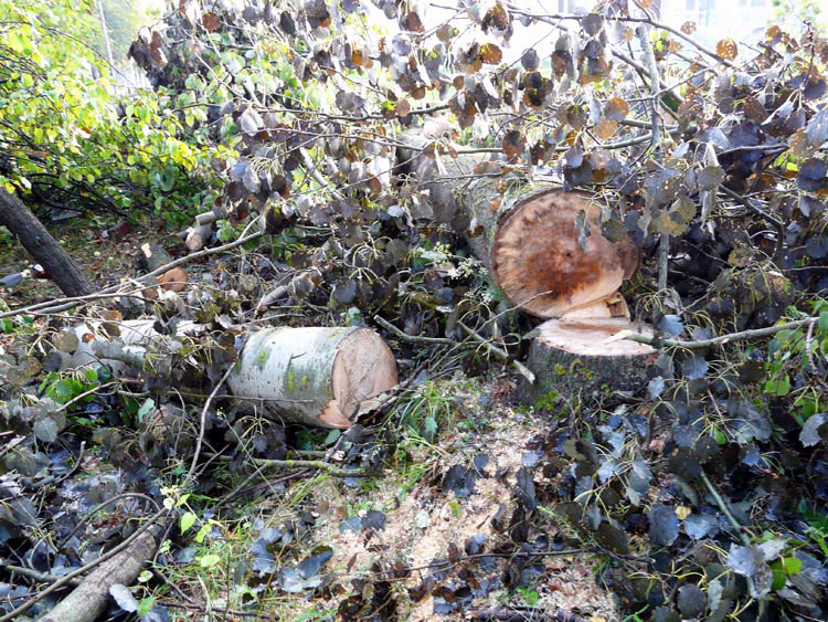 | (Stumps and remains of felled trees, August 10, 2009) | ||