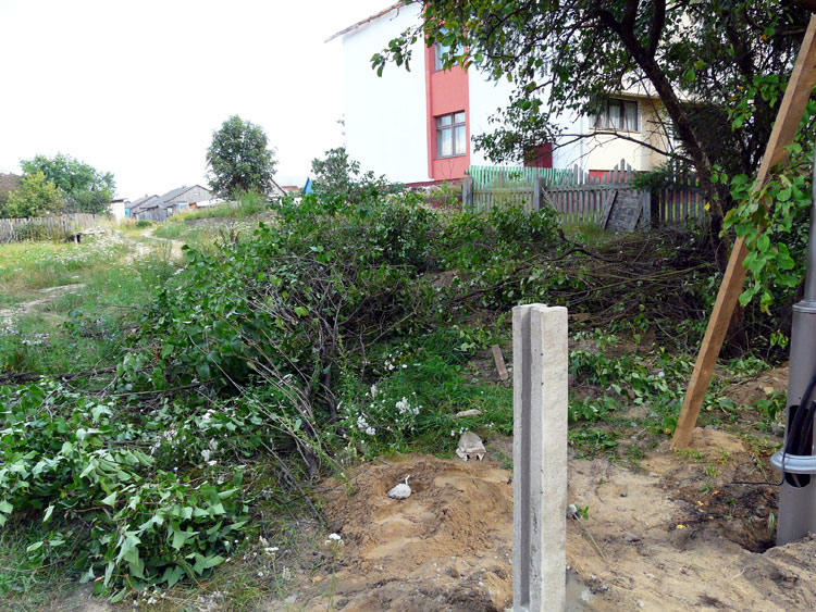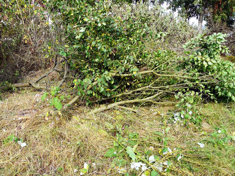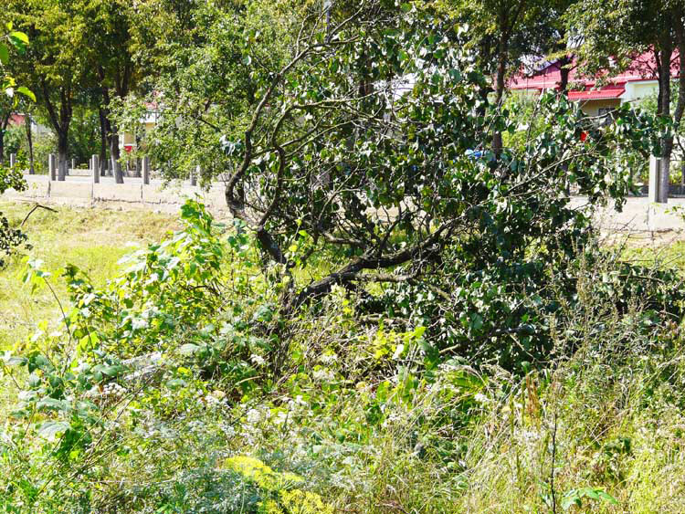 A lot of shrub, and wild and cultivated fruit trees grew behind the fence that runs along the street. All of the shrub and most of the trees were cut down.