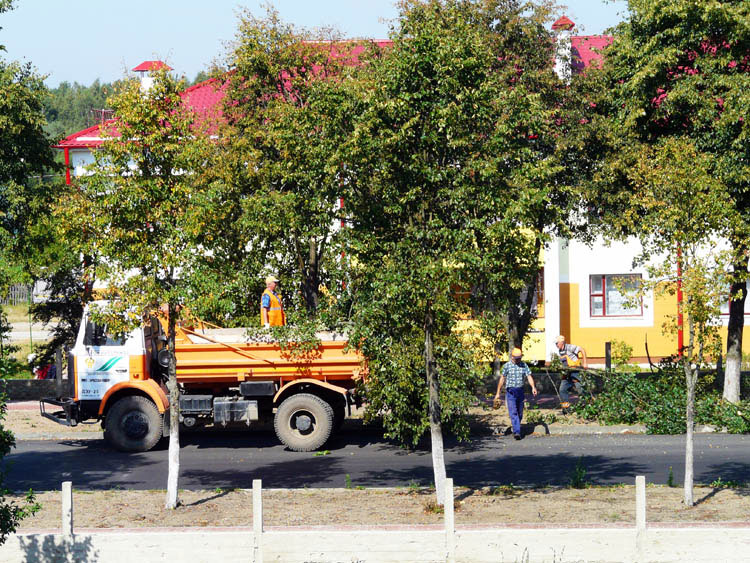Reports surfaced as early as in the beginning of 2008 that there were plans to perform an imposing overhaul and broadening of Kamenyuki’s main street , which implied that the linden alley would be cut down (!?). Local residents were told not to plant trees in the gardens in front of their houses as the plants would be replaced with lawns with grass, decorative plants and shrub. The decision evoked righteous indignation from the locals, and complaints reached as far as the capital city of Minsk. In a May 2007 meeting with the villagers in Kamenyuki, the top officials of the presidential property management department promised to revise the decision. The Minsk officials kept their promise, and the unreasonable idea to cut down the linden alley was revoked. The alley and the gardens were saved, while the renovation of the main street was kept within reasonable limits.