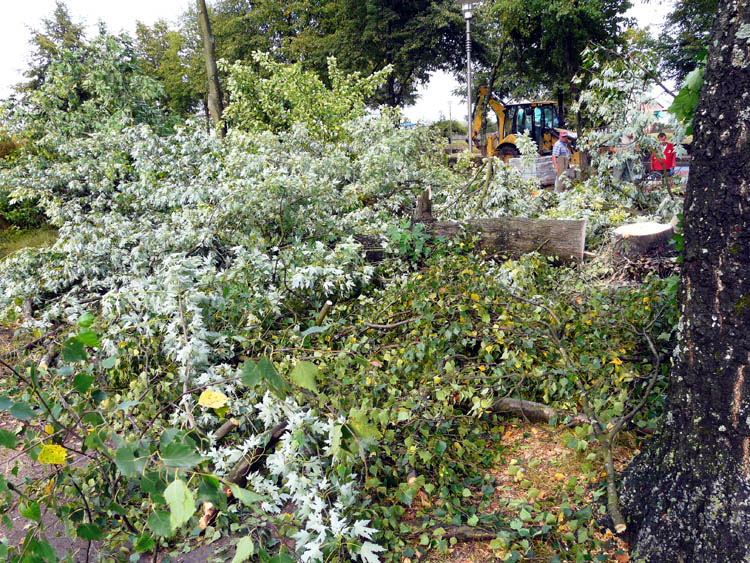 The shots below show the sawed-down and fallen poplar.