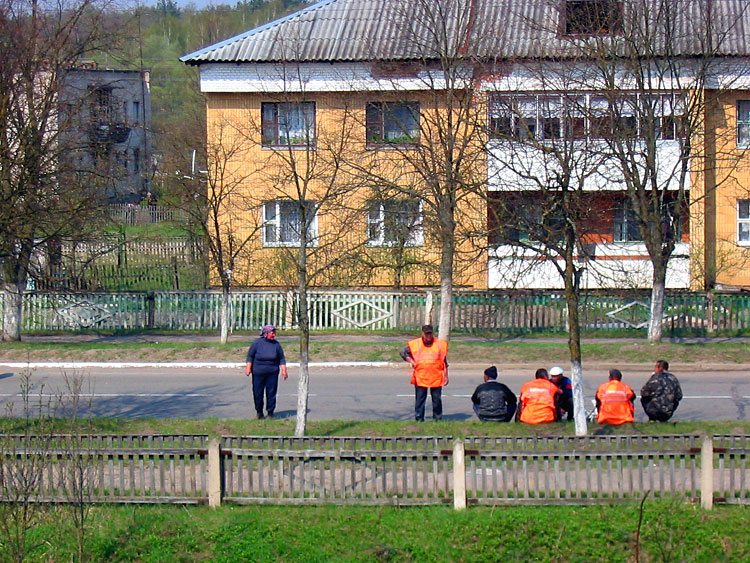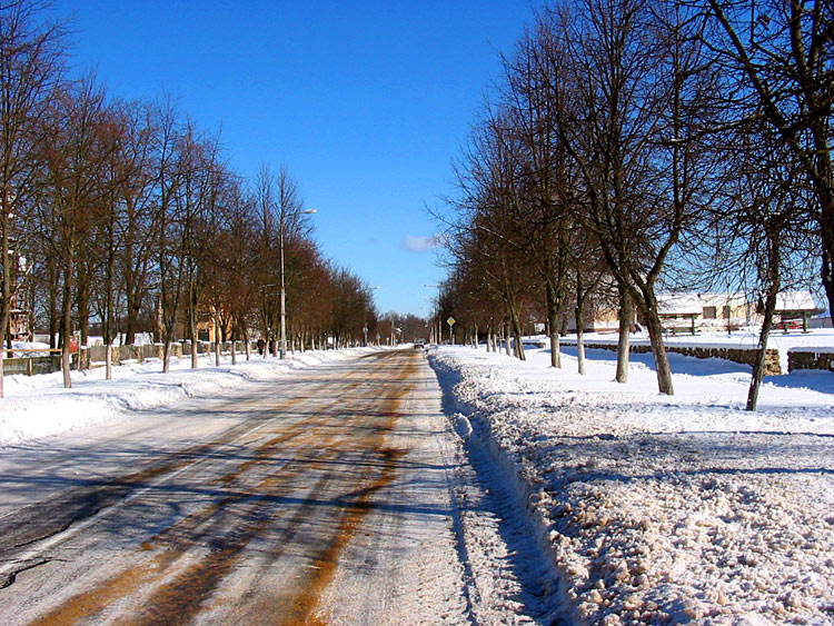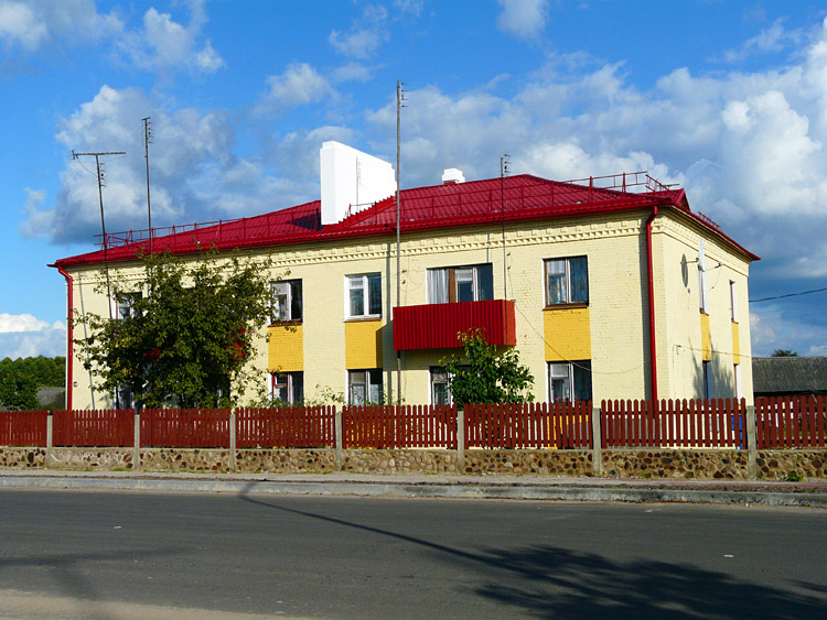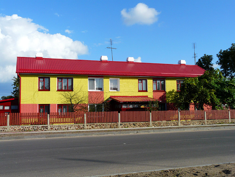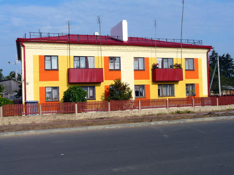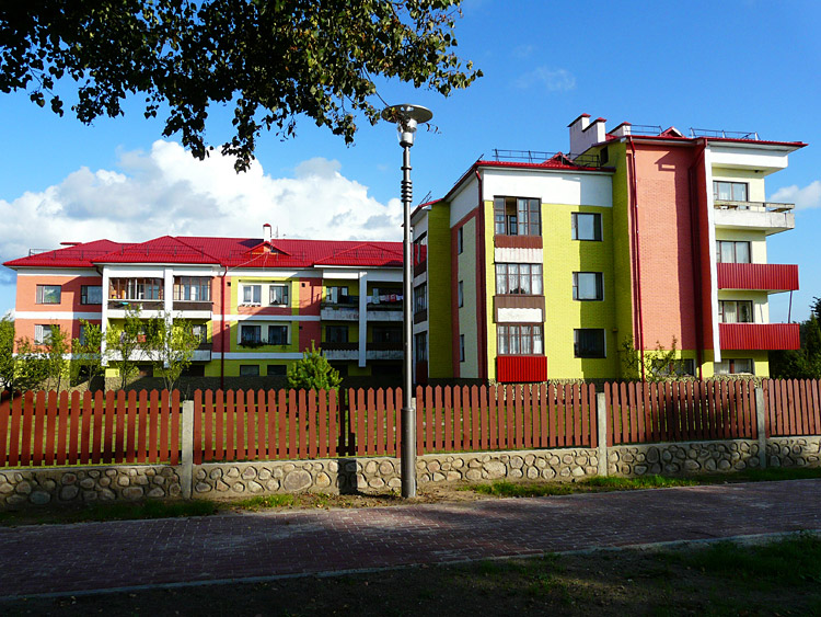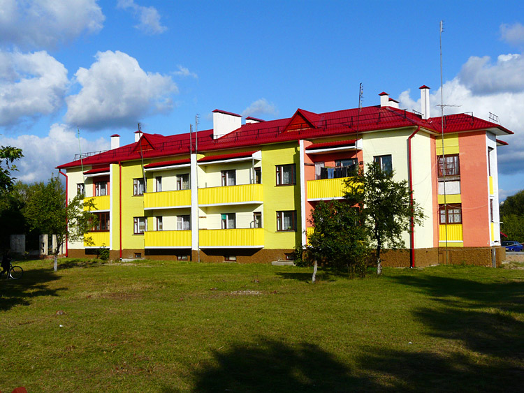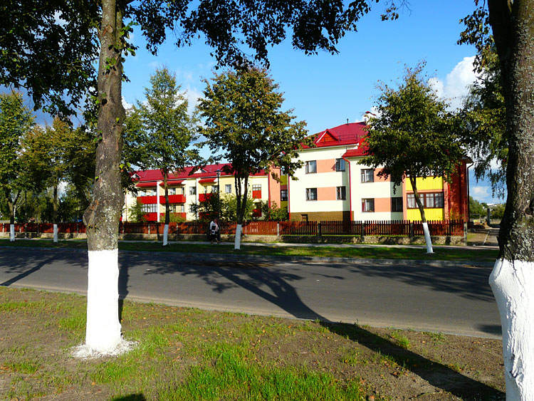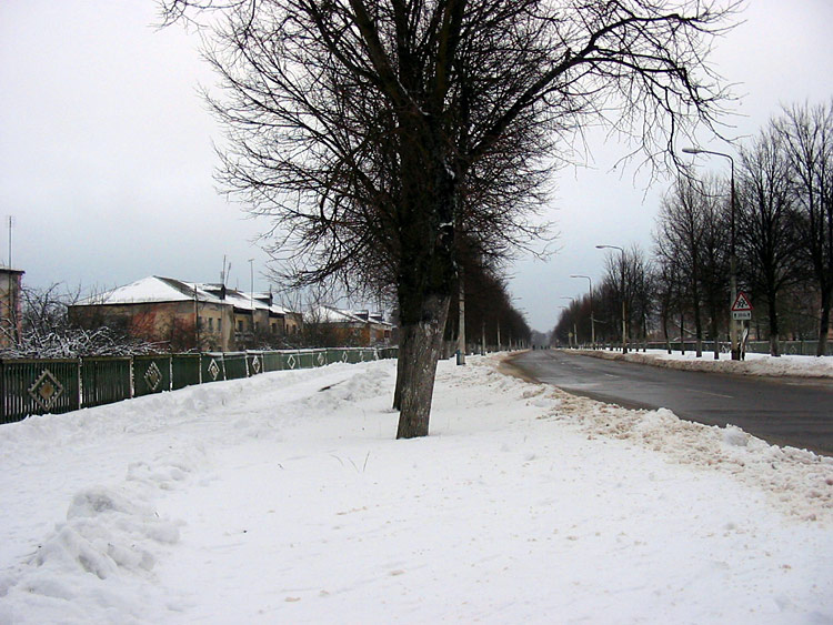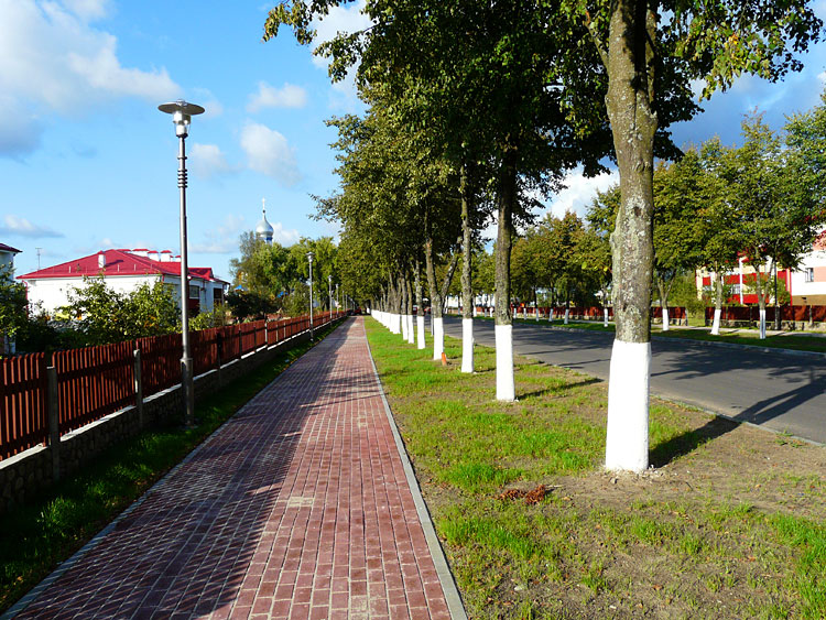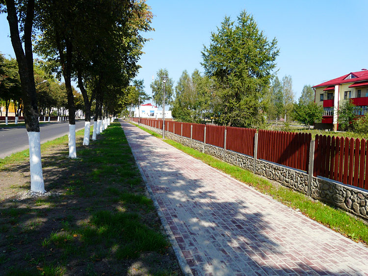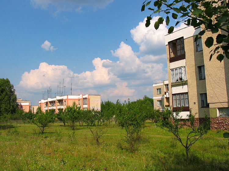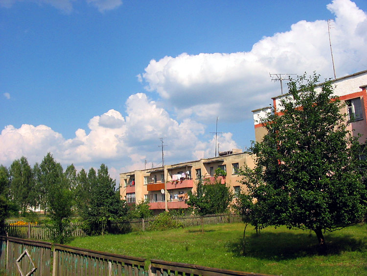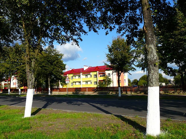 The village has a fairly large amount of greenery. Forty-year-old lindens grow along the main street. The trees smooth over the unsightly appearance of the brick buildings somewhat.