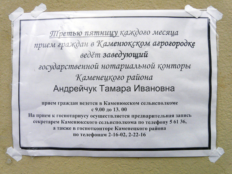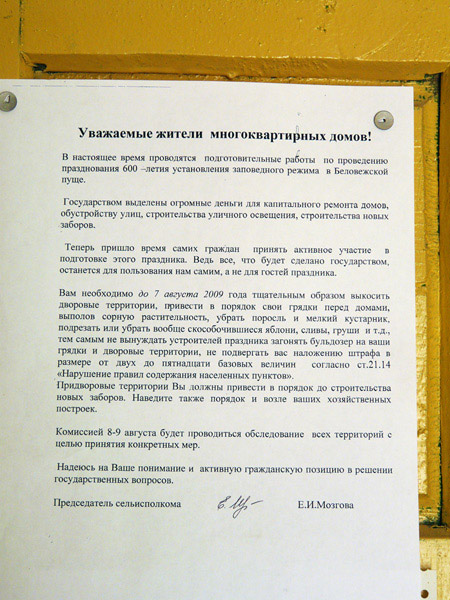 | (The notice referring to Kamenyuki as an "agro-town", August 29, 2008) |